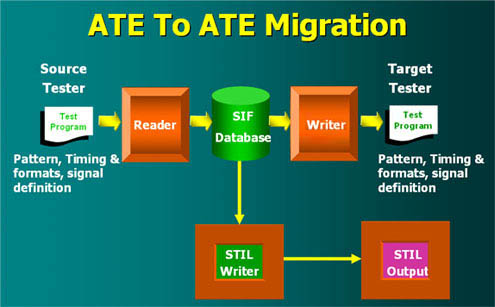 Semiconductor production test environment often needs to migrate test programs from one test system to another for capacity and/or obsolescence reasons. The T2T is a conversion program that converts existing test programs from one test system into the test language of the target test system. Currently T2T product supports vectors, timings and pin test data conversions. In addition, the T2T product also optionally provides a migration path from the source ATE test program to the IEEE 1450 standard STIL test language.